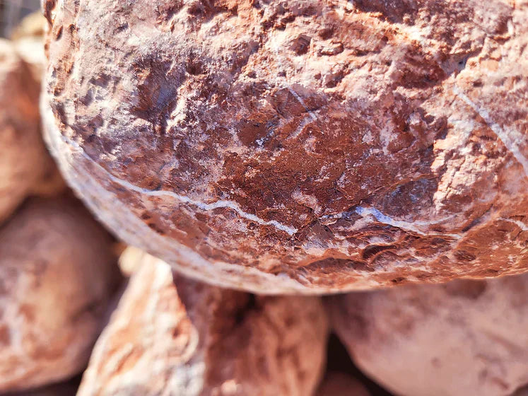 - Natural pinkish-red coloration with marbled surface